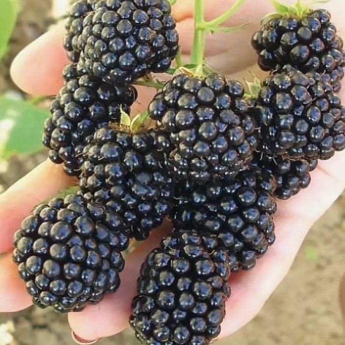 Сорт раннего срока созревания. Бесшипный (шипов очень мало), полустелющийся сорт. Побеги длинные, достигают 3-5 м. Начинает цвести в мае, цветы белые, собраны в соцветия. Первые плоды появляются уже в конце июня. Плодоношение длится до начала-середины сентября (при отсутствии заморозков). Урожайность высокая, в среднем 9-10 кг с куста. Ягоды очень сладкие. Средняя масса ягод 5-10 г. Урожай на первом году после посадки совсем небольшой. Очень плохо переносит холодные зимние ветра и обледенение побегов, поэтому требует обязательного укрытия на зиму. В то же время, стоек к большинству заболеваний и вредителей.