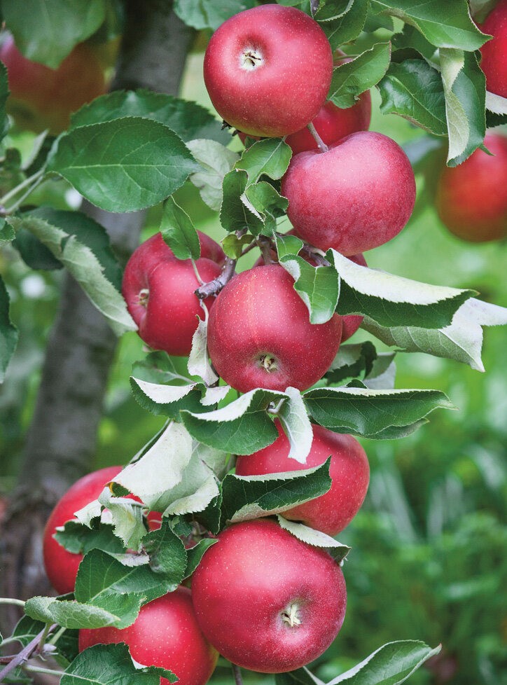 У колонновидных яблонь, кроны деревьев очень узкие, всего лишь около 40 см, а высота обычно не более 2,0-2,5 м. Cады, состоящие из колонновидных яблонь, дают в 5-6 раз больше яблок чем обычные. Высокая урожайность плюс комфортные условия работы среди малогабаритных деревьев – всё это делает такие сады привлекательными особенно для пожилых садоводов. Невысокие компактные деревца позволяют дотянуться руками при сборе урожая до любых плодов, а при обрезке до любого побега. Яблони вступают в плодоношение с 1-2 года посадки, первые 3-4 года урожай составит около 4-5 кг, а с 5 года роста с деревца колонновидной яблони можно будет собирать до 12-15 кг яблок.